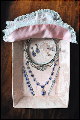details, click here), we see the sapphires in the tray in which they are transported to the Queen for use. They are accompanied by the
