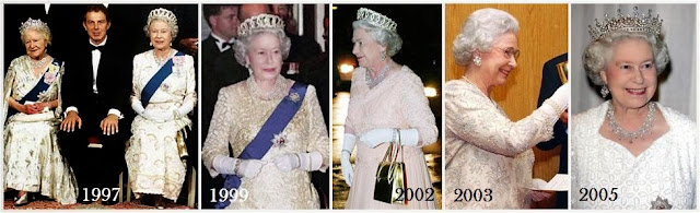 2003: A pearl and diamond set we haven't covered yet. This year she opted for a less formal look and did not wear a tiara.