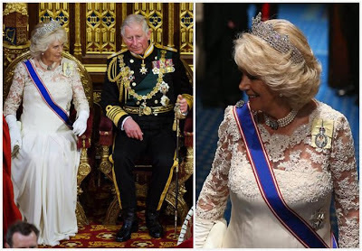 For us, of course, it gives an opportunity to see more of the Queen's jewel collection on display - this time in the form of the Greville Tiara, which is on loan to Camilla. She paired it with her Four Strand Pearl Choker with Large Diamond Clasp, for a pretty standard jewel appearance.